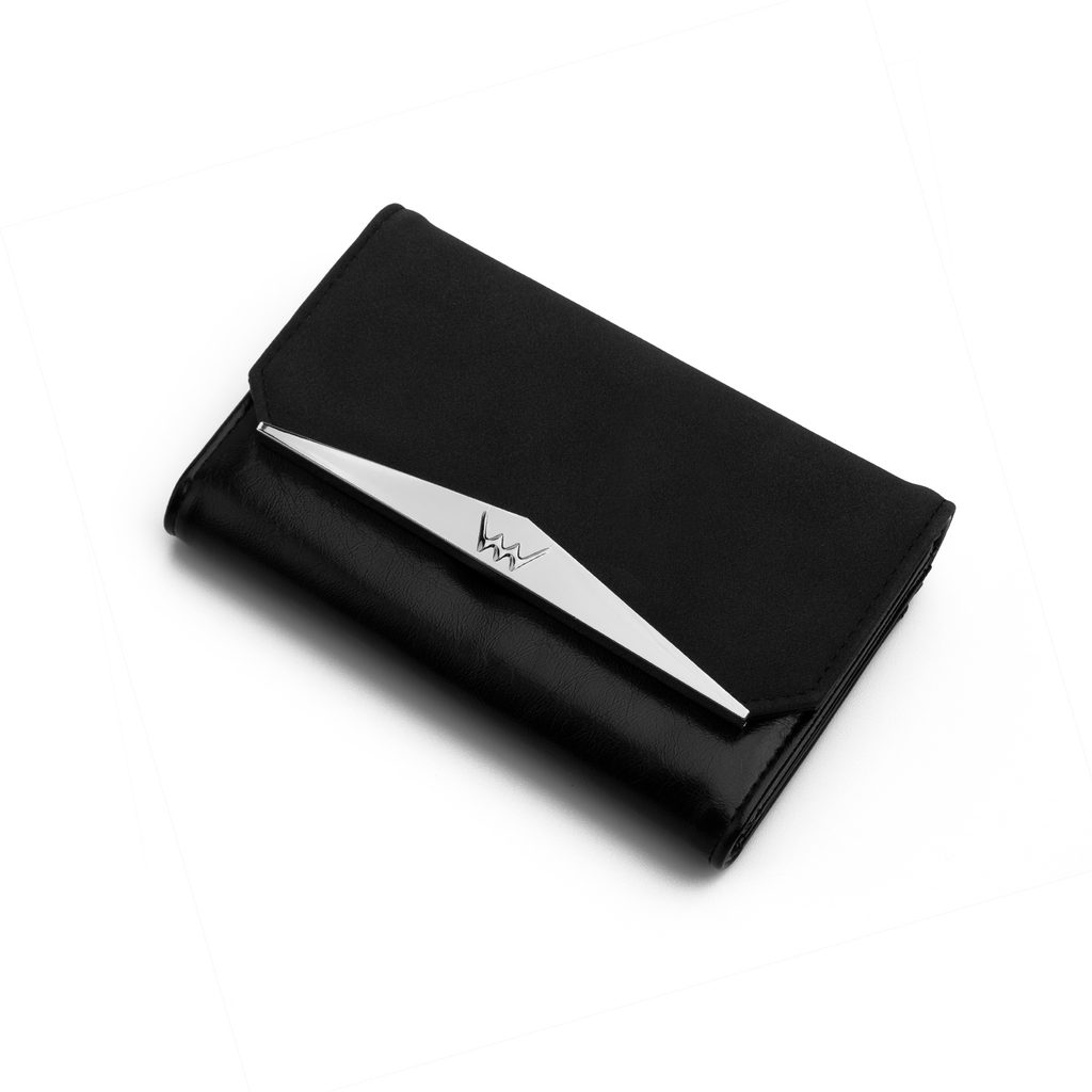 A clever wallet you can open into multiple parts and keep track of everything. In short, you can read Cheila Black like a book. Main snap closure Made of two materials…