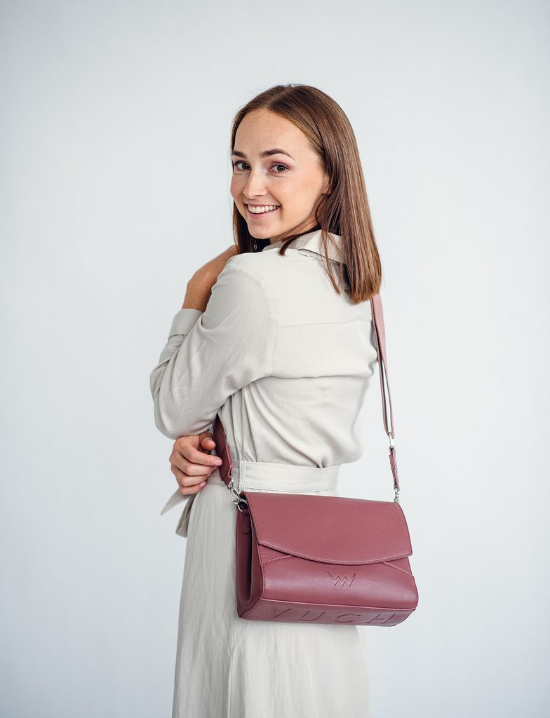 - Stitching in the shape of the Vuch logo on the back of the bag