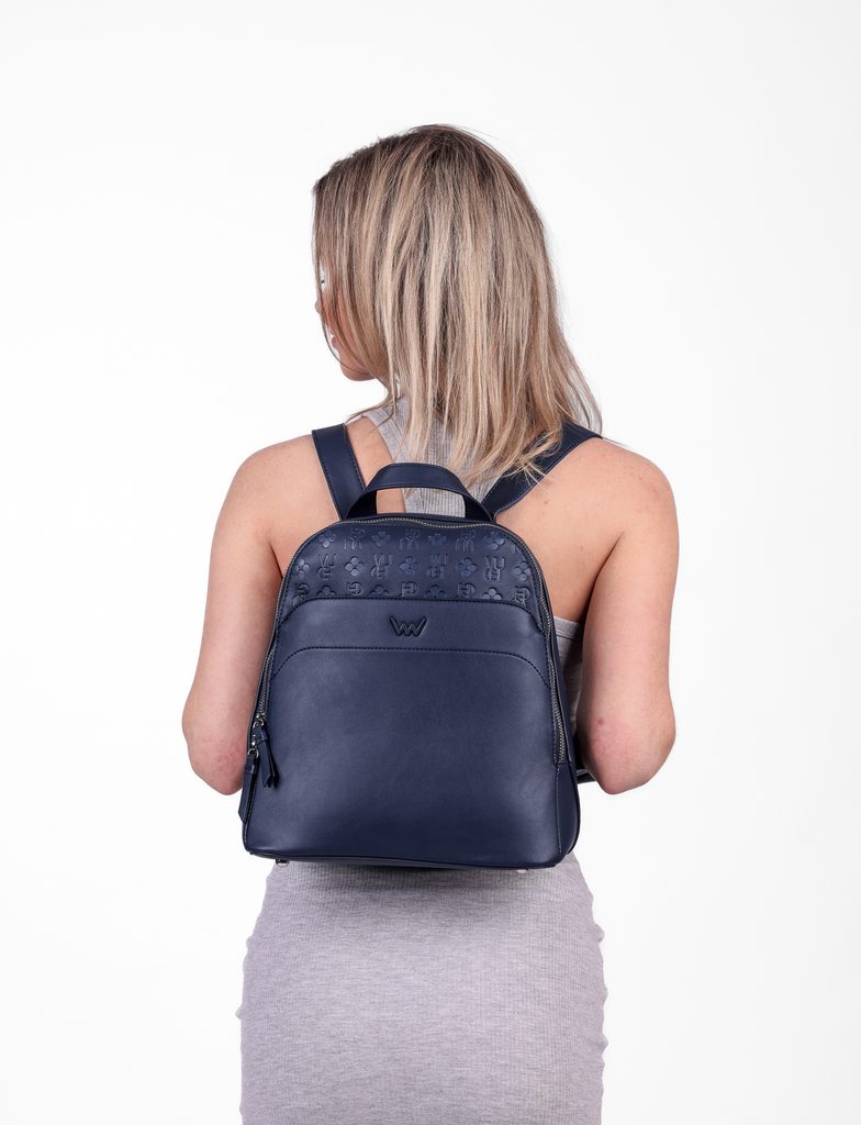 Filipa MN Blue elegant urban backpack with monogram