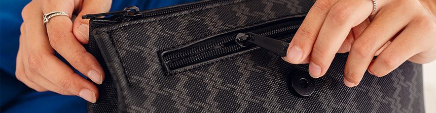 - External magnetic pocket + zip pocket