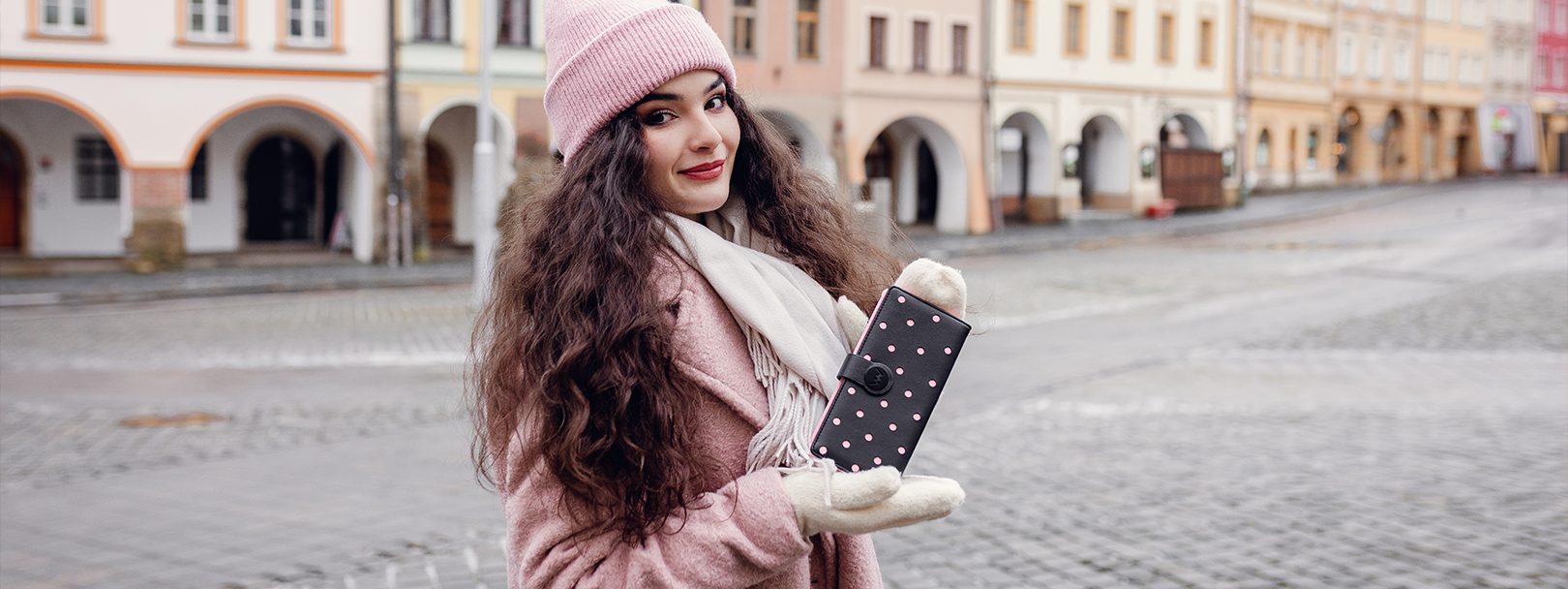 Small dotted wallet with snap closure