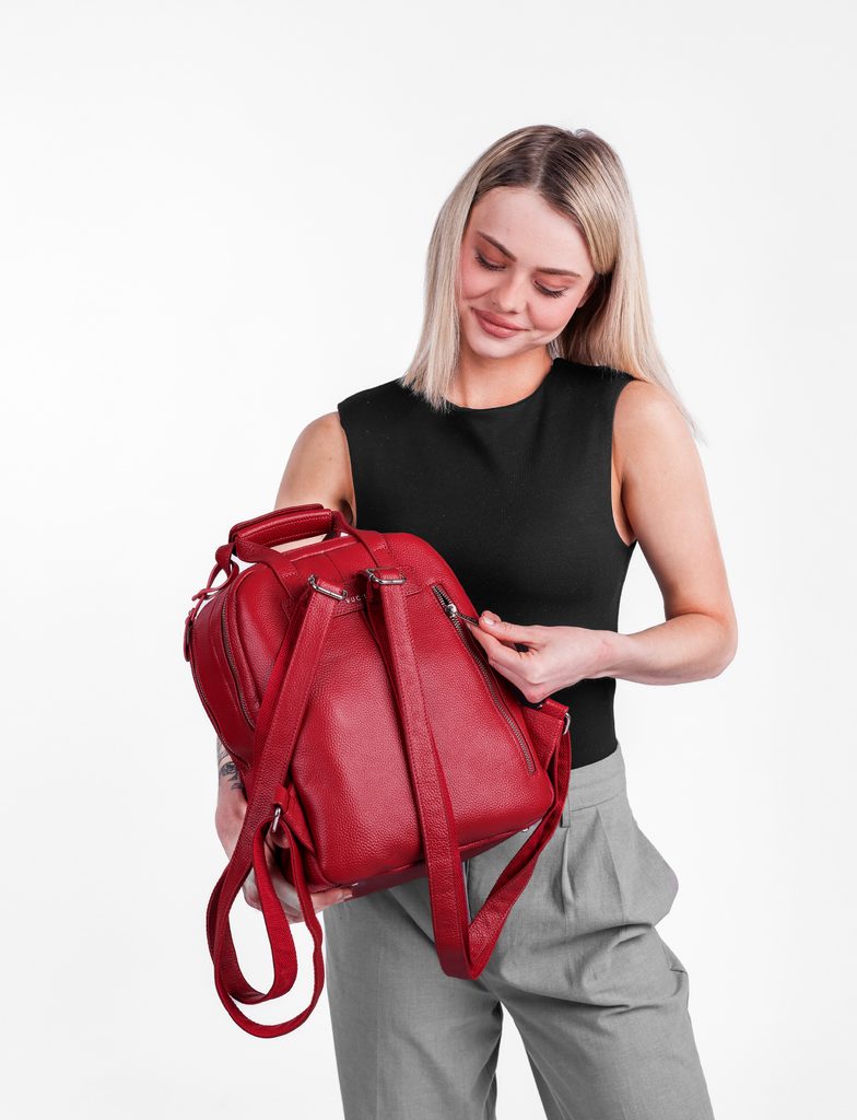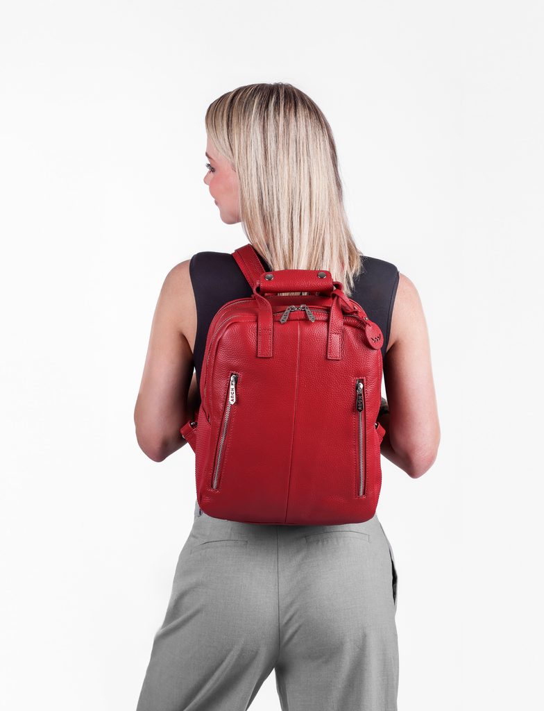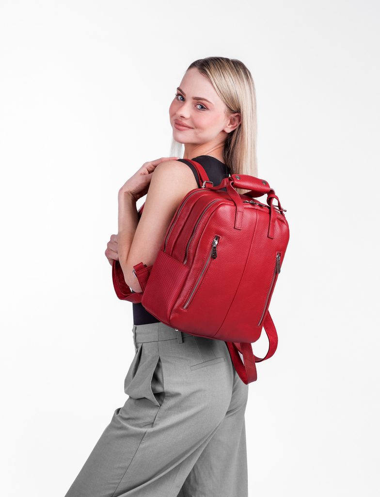 Kalimba Red leather urban backpack