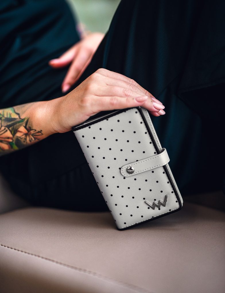 „Playful, adventurous and unconventional. These are the main features of polka dot wallets. And what is their main mission? To brighten up your day! Just choose the one that catches your attention the most and entrust it with all your valuables. It will then guard them like an eye (dot) in your head.“
