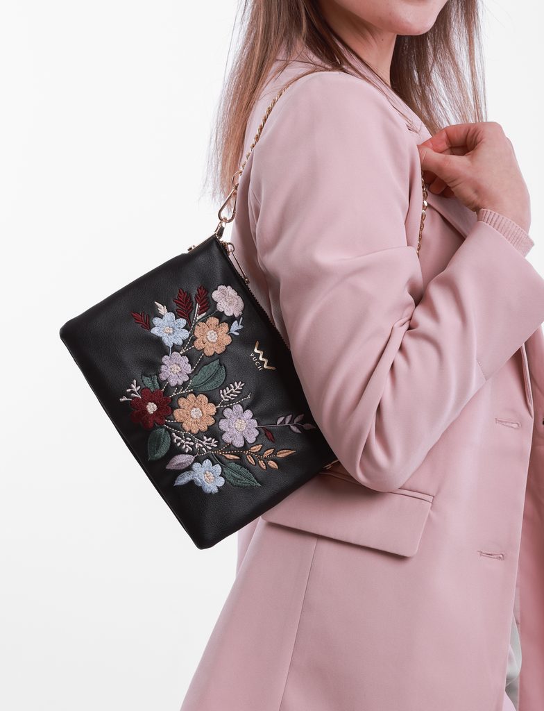 Lylann Flowers Black mini crossbody bag with floral embroidery