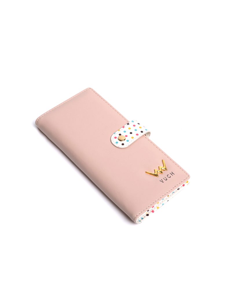 Nude ladiest large polka dot wallet with patent