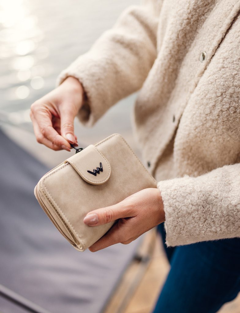 Paulie Beige medium wallet with a snap closure