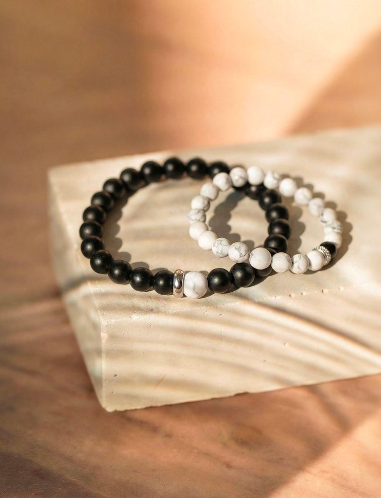 More information„Even if your life isn’t black and white in the slightest. A black and white couple’s bracelet will suit you. Each of these bracelets look good on their own, but they look the best when you’re holding hands together.“