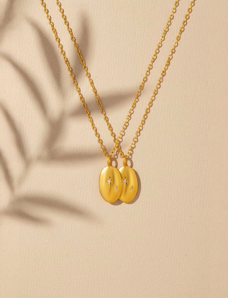 A pair necklace with crystal-adorned pendant that has a dual meaning. One for you, another for someone close. The minimalist design lets the gentle sparkle of the stones…