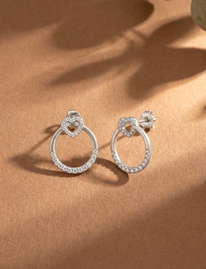 These pure silver earrings embody the symbolism of never-ending love. The connection of a radiant circle and a delicate heart seems to declare: True love is infinite.…