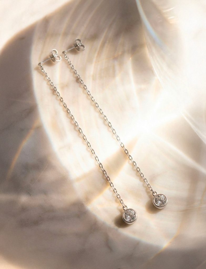 - Dangling chain earrings without clasp