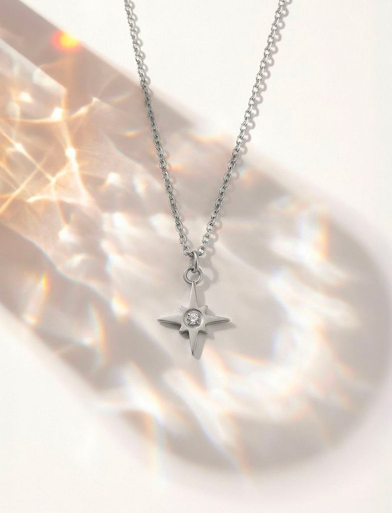 More informationA minimalist star-shaped pendant with crystal that will remind you where your light is. Delicate chain, subtle sparkle, and a shape that never goes out of style. Whether you wear it every day or save it for special moments, it will always shine.