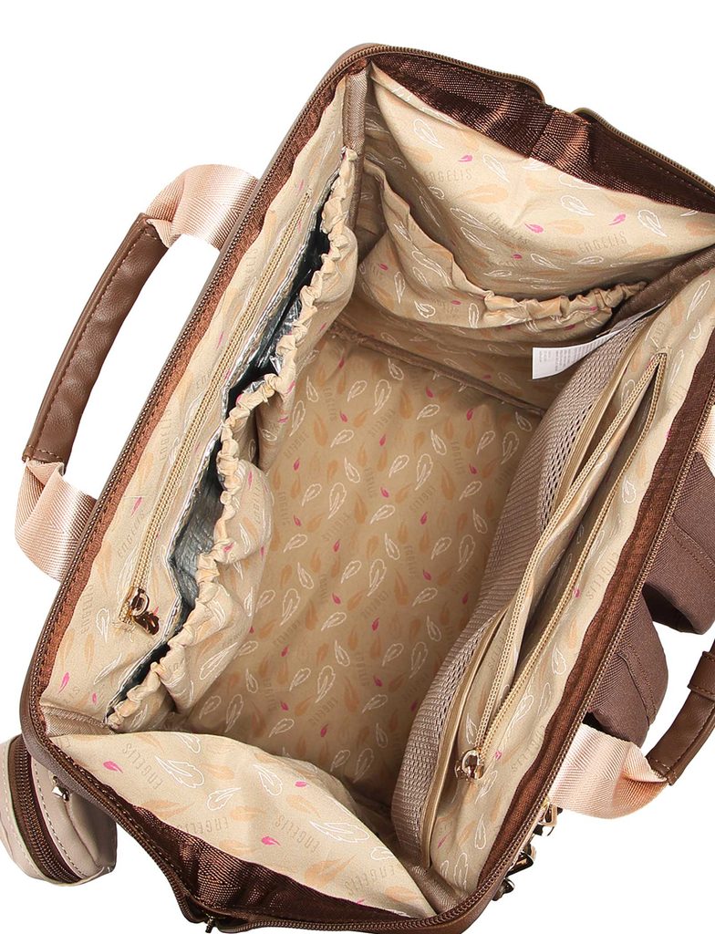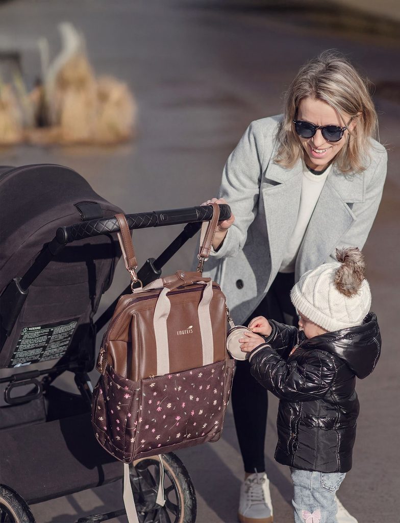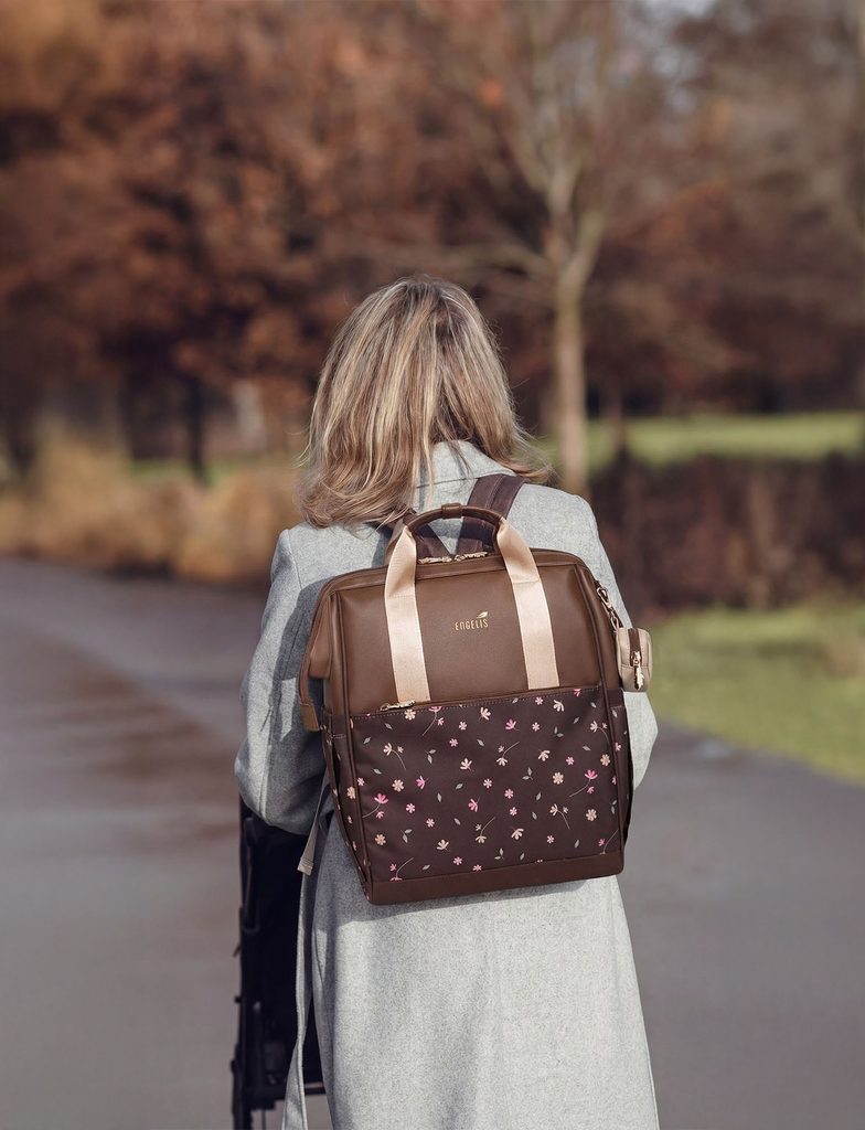 Eloa Flowers Brown spacious pushchair backpack Engelis