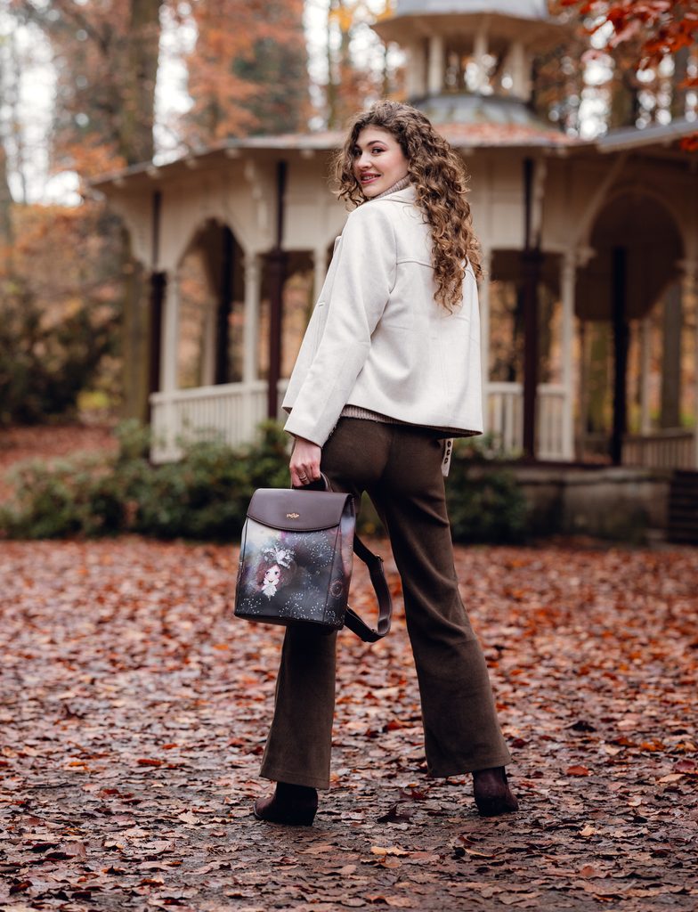Its shape appears delicate, but inside it hides enough space for everything you need to have with you. It has a spacious main compartment with dual closure – zip and magnet. On the back you'll find zip pockets, inside there are compartments and a smaller zip pocket. Comfort is ensured by adjustable shoulder straps. So close the flap, take a deep breath and let yourself be carried wherever the wind takes you.