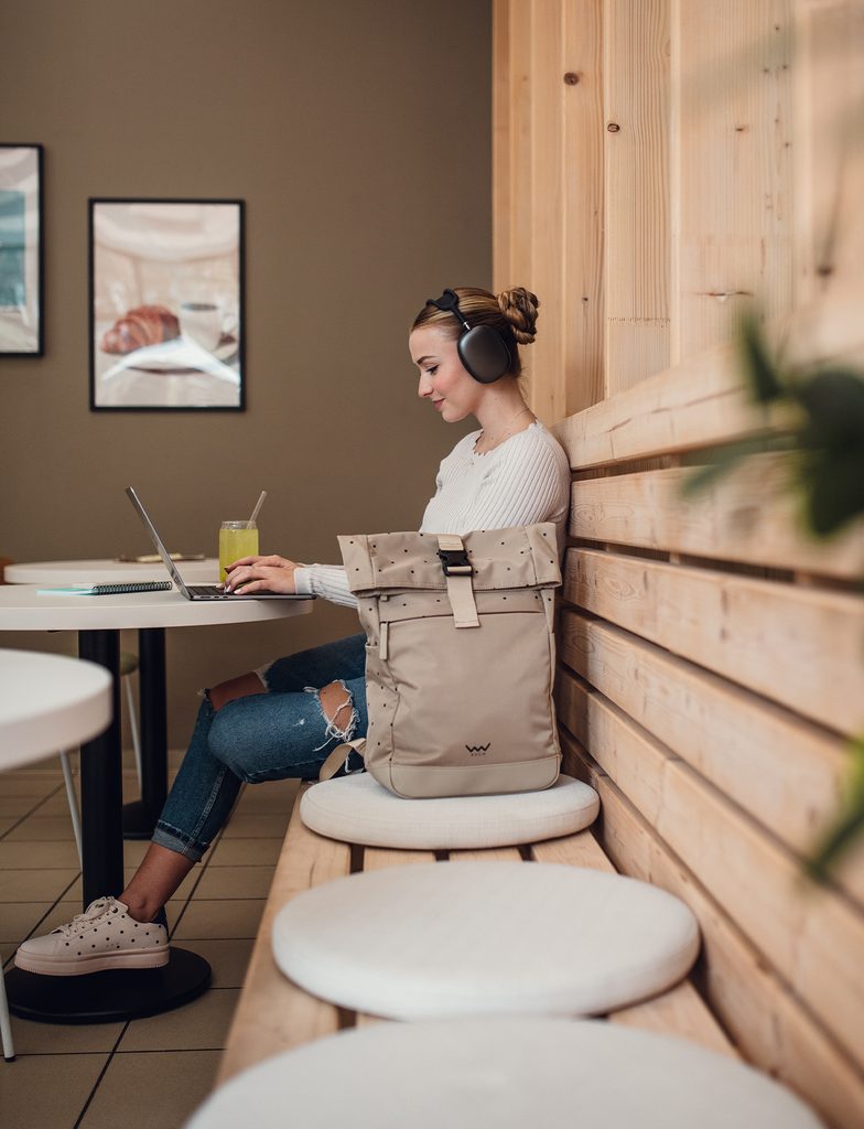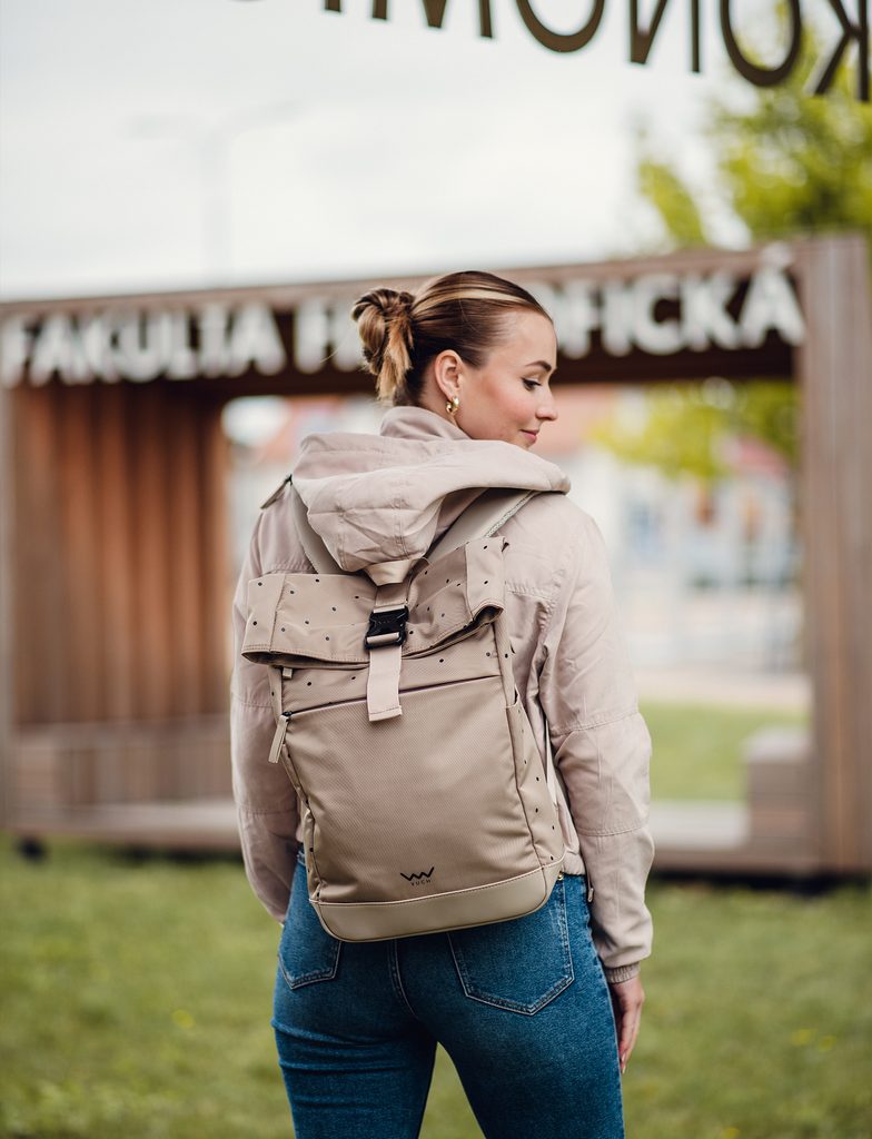 Whether you're planning to walk through the city centre or a forest trail, this polka dot backpack will keep pace with you. Thanks to the roll-top closure, it adapts to…