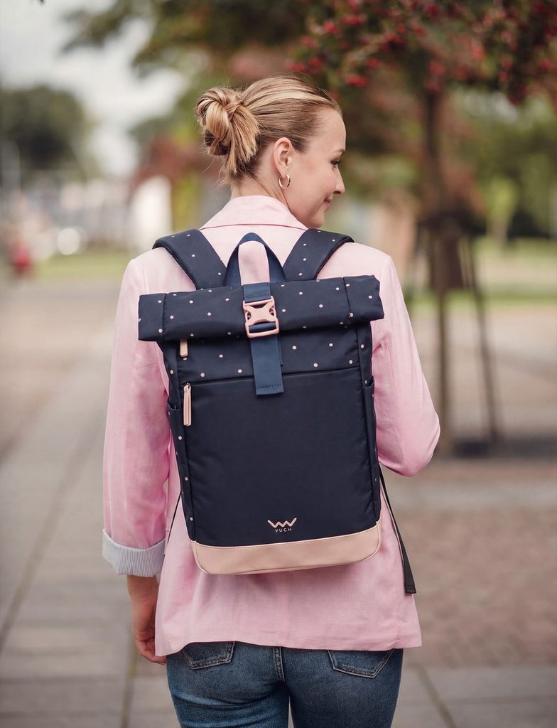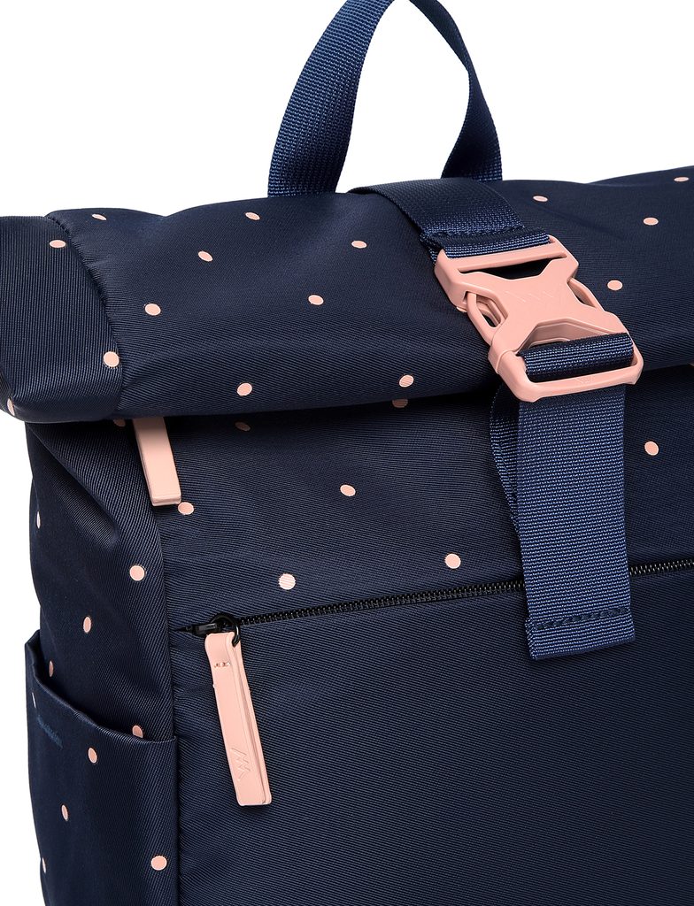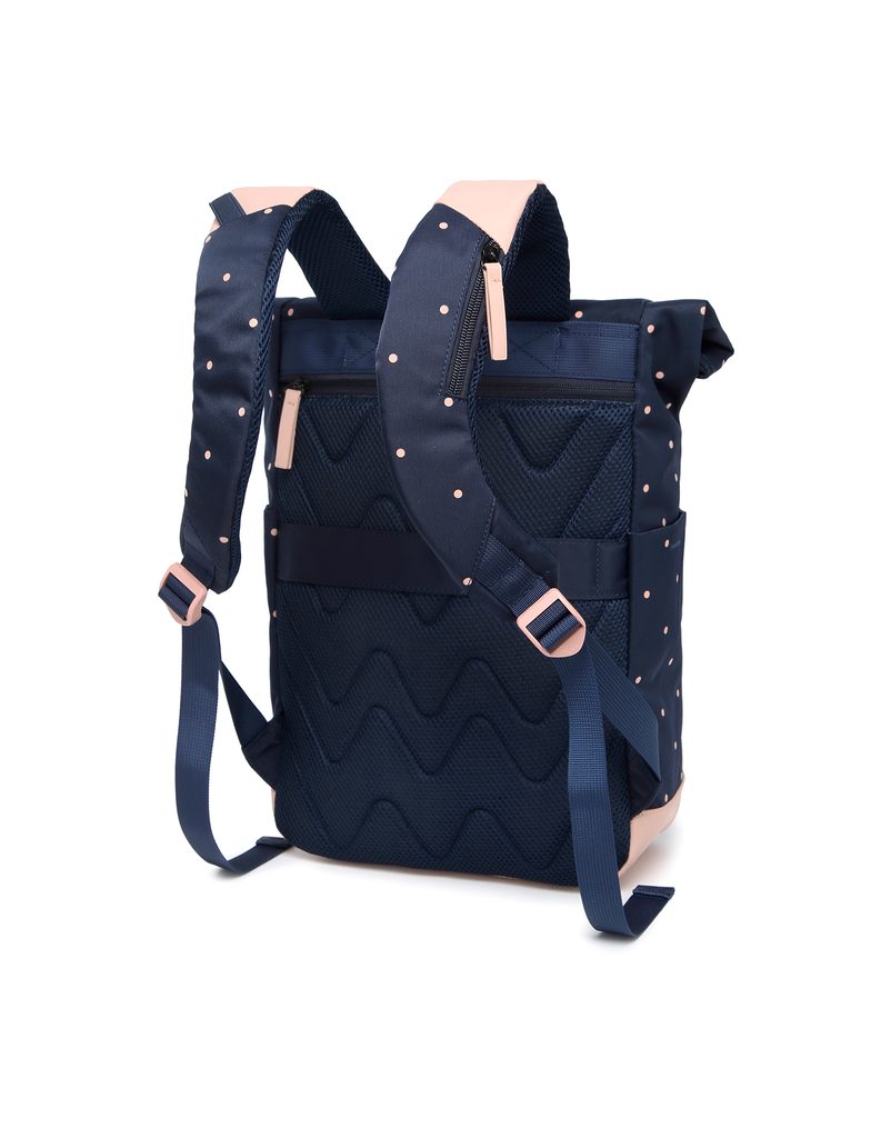 Whether you're planning to walk through the city centre or a forest trail, this polka dot backpack will keep pace with you. Thanks to the roll-top closure, it adapts to…