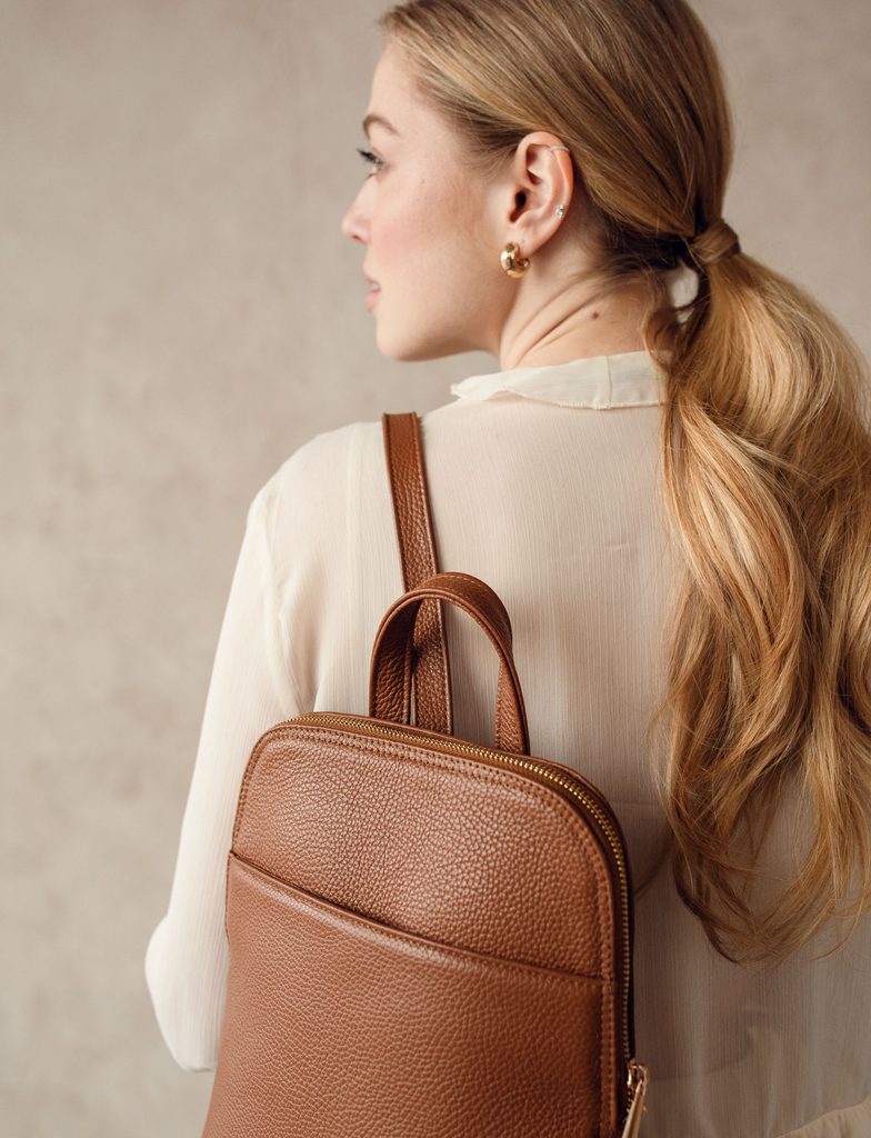 Filipa Grace Brown backpack in Italian cowhide leather