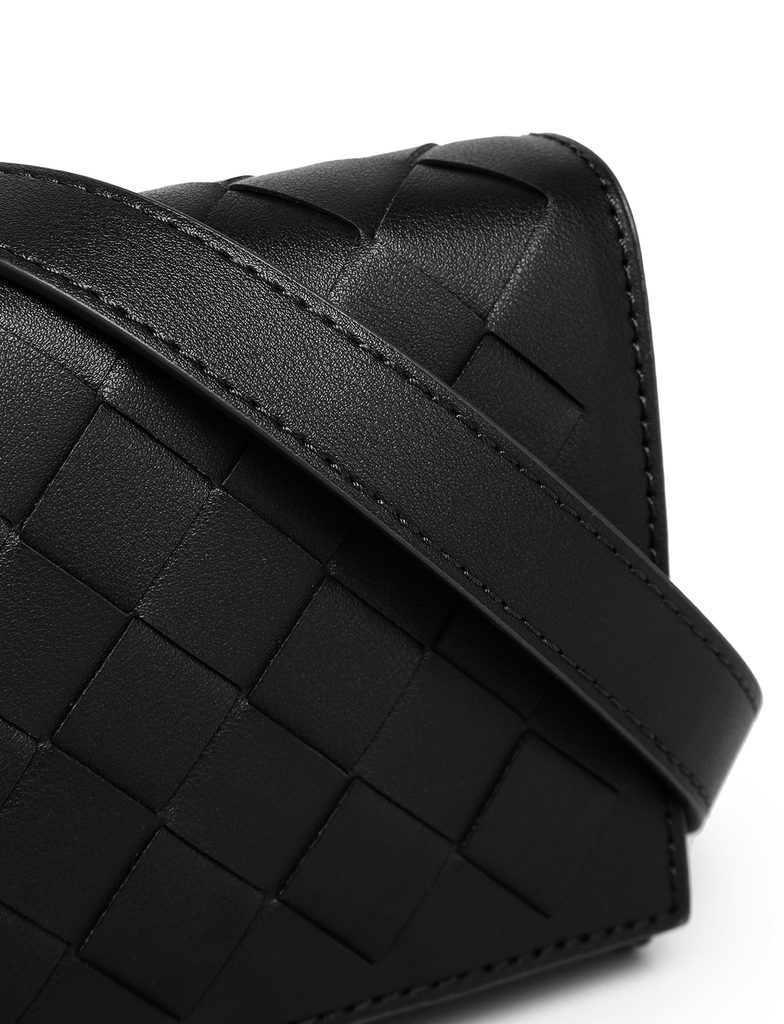 Emeroo Intrecciato Black elegant clutch bag with interwoven pattern