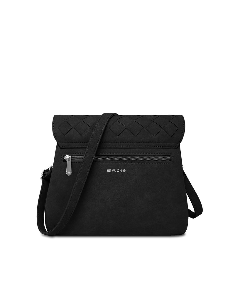 Byrsa Intrecciato Black suede-effect crossbody bag with interwoven pattern