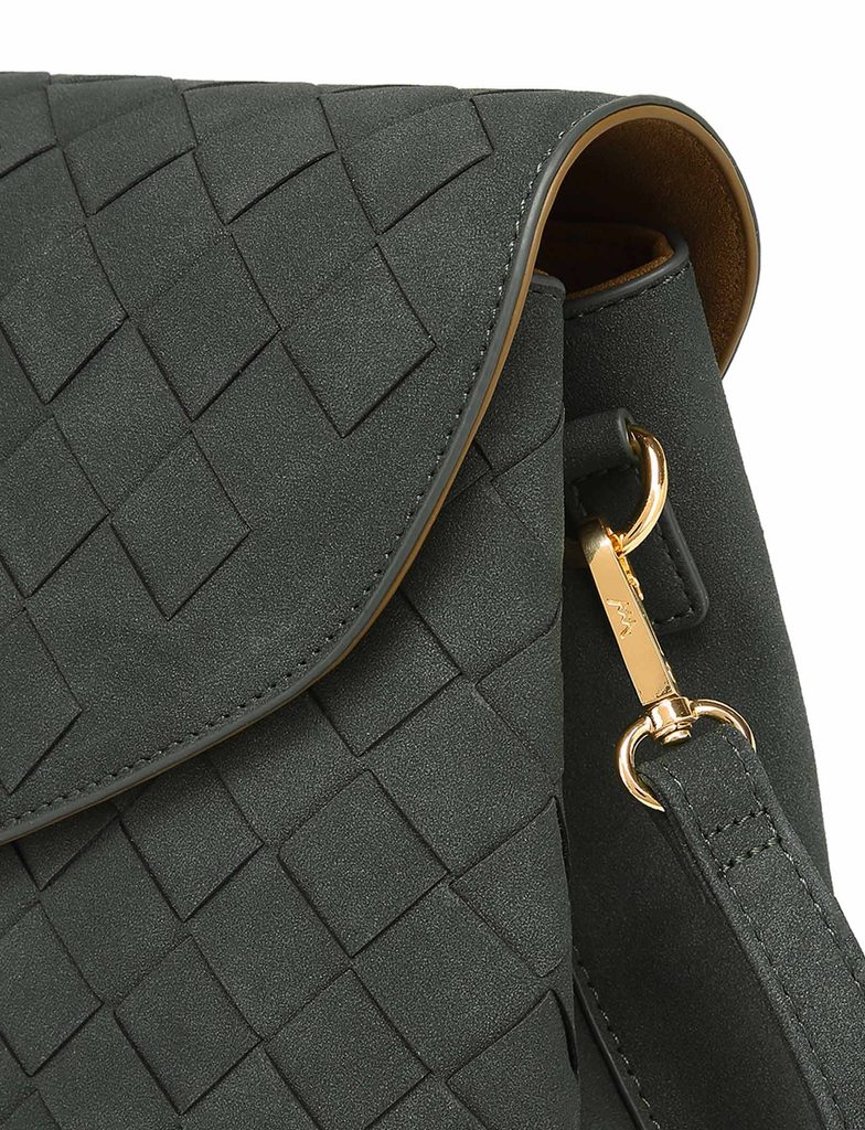 Byrsa Intrecciato Green suede-effect crossbody bag with intrecciato pattern