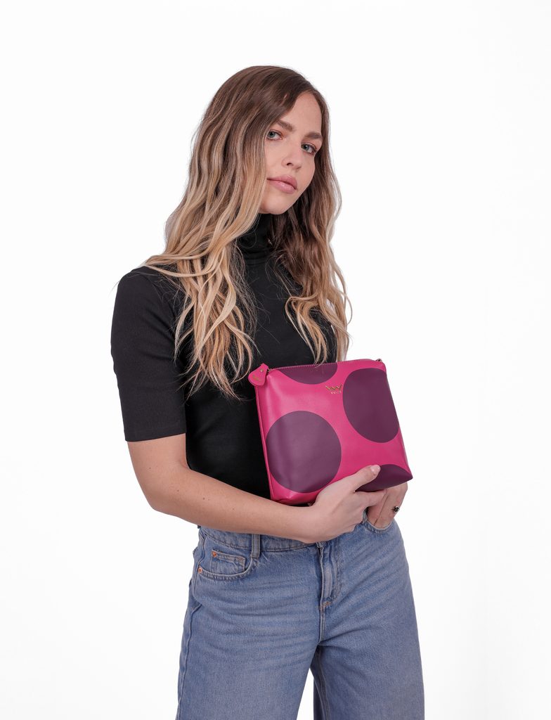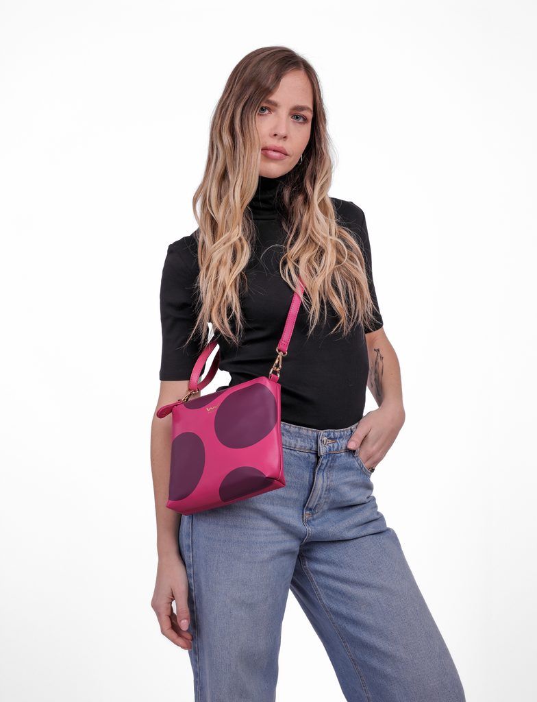 Coalie Big Dot Raspberry polka dot crossbody bag