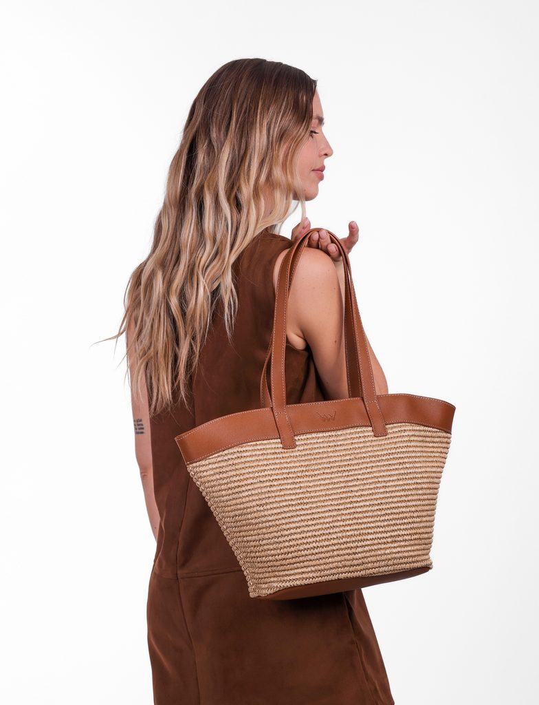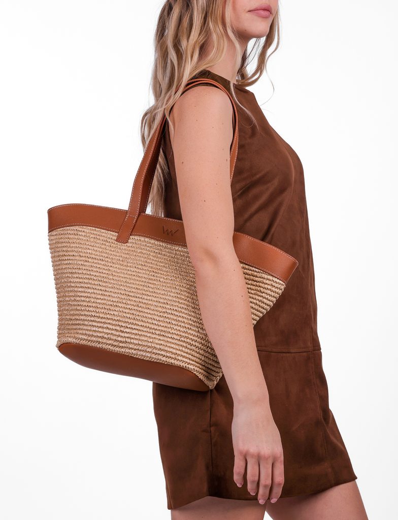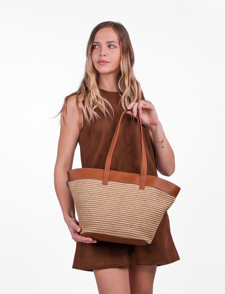 A large bag with the scent of summer. This model combines the lightness of raffia and the elegance of leatherette details. It's a bag for days when you won't settle for…