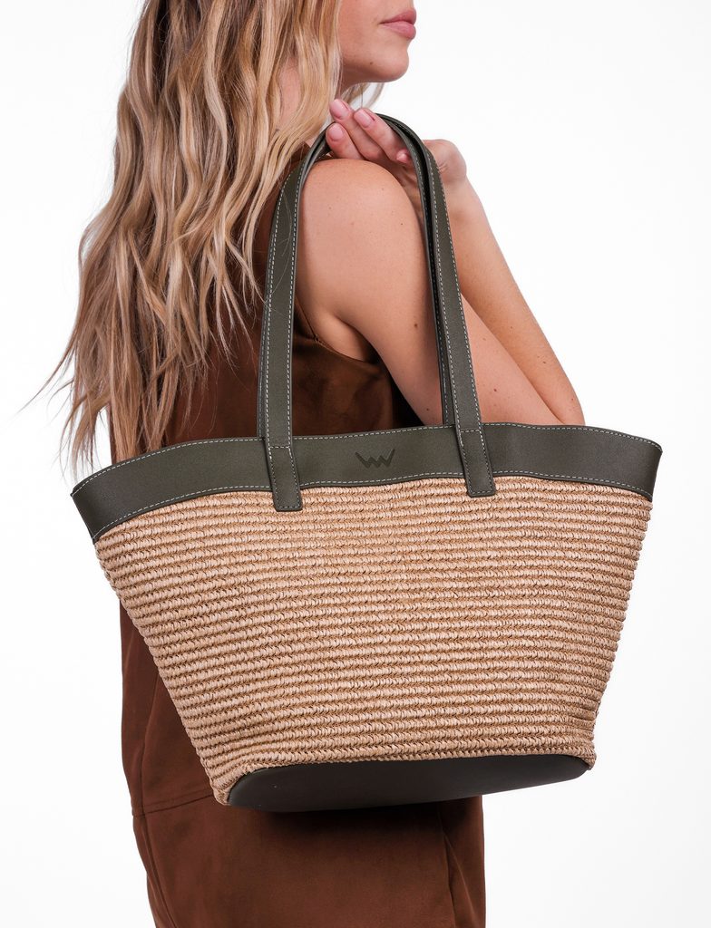 Sora Rio Green large raffia handbag