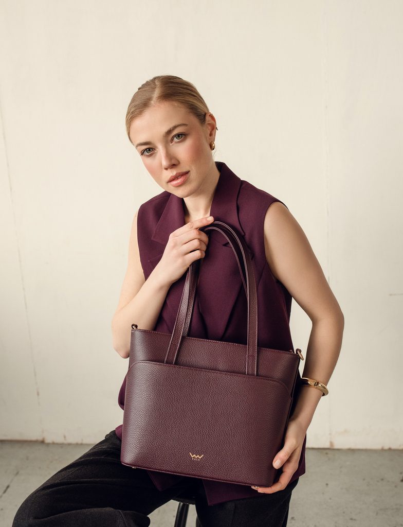 Neela Grace Wine Red large handbag made from Italian cowhide leather