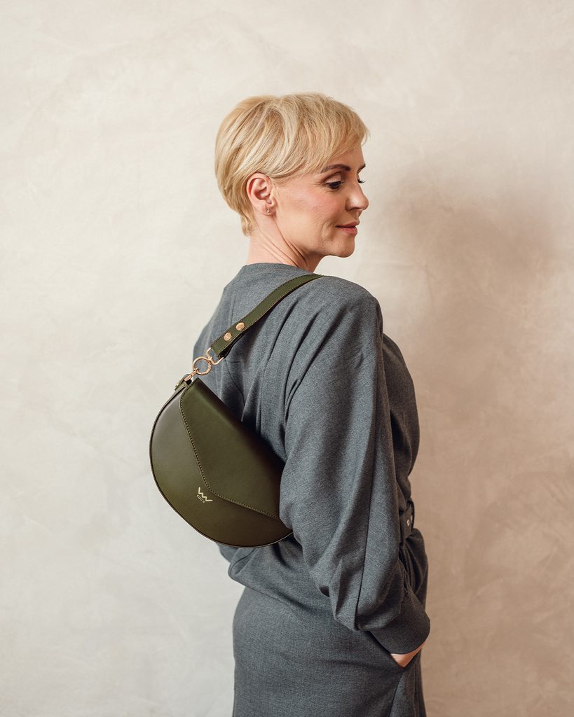Tricia Grace Olive crossbody belt bag in Italian bovine leather