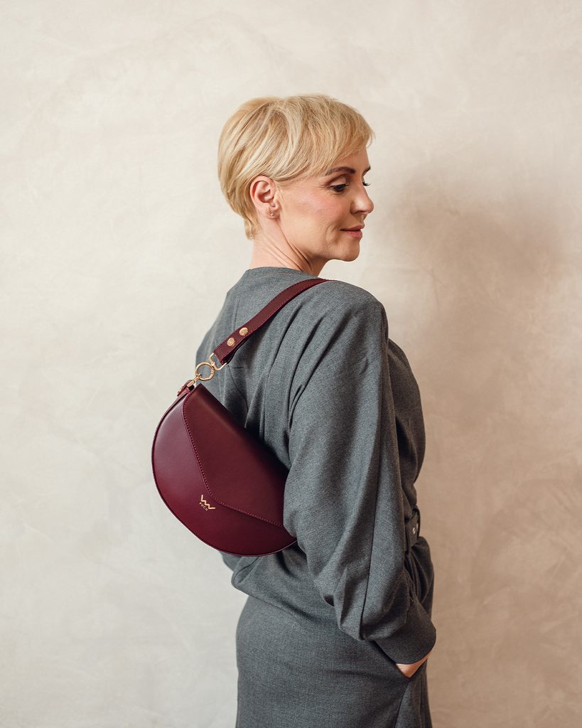 Tricia Grace Wine Red crossbody belt bag made from Italian bovine leather