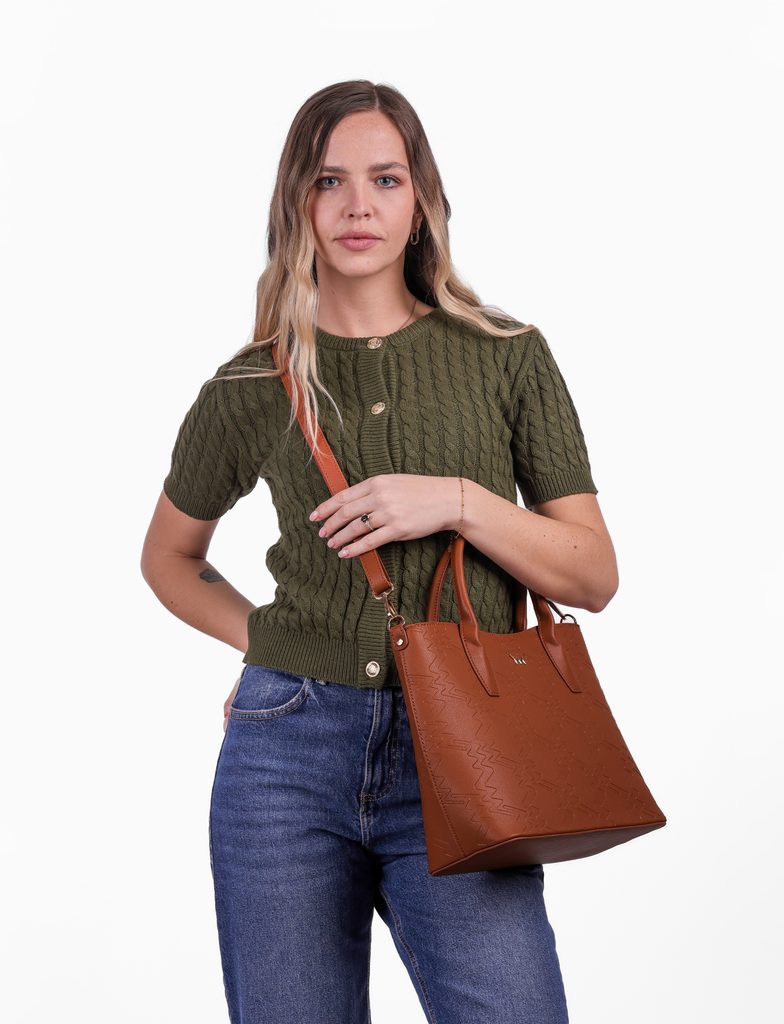 More informationChristel is one of those handbags that loves to transform throughout the day. And this time in a striking monogram pattern. In the morning you'll carry it elegantly by hand, later you'll attach the strap and wear it over your shoulder. Inside there's a large main zipped compartment, practical pockets for small items and a place for exactly those things you don't want to hunt for at the bottom of your bag. Simply a handbag that handles both style and everyday use.