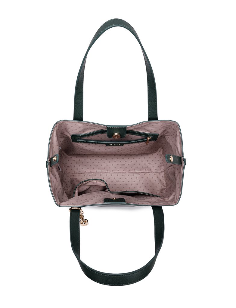Roselda Charm Green handbag with organiser