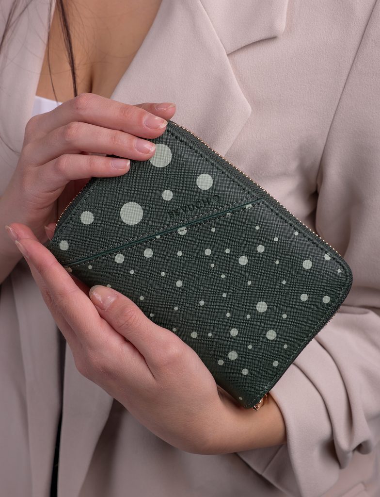Sibel Green medium polka dot zip wallet