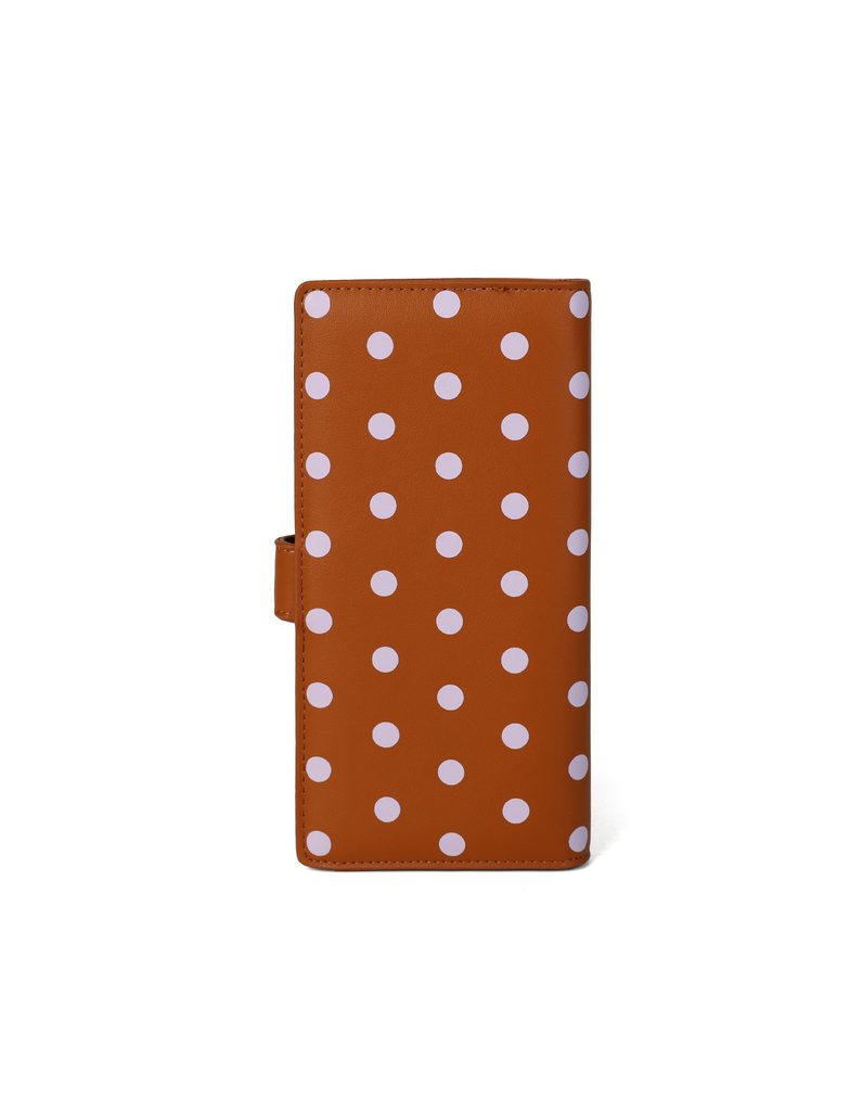 Eleria Brown large polka dot purse with snap closure