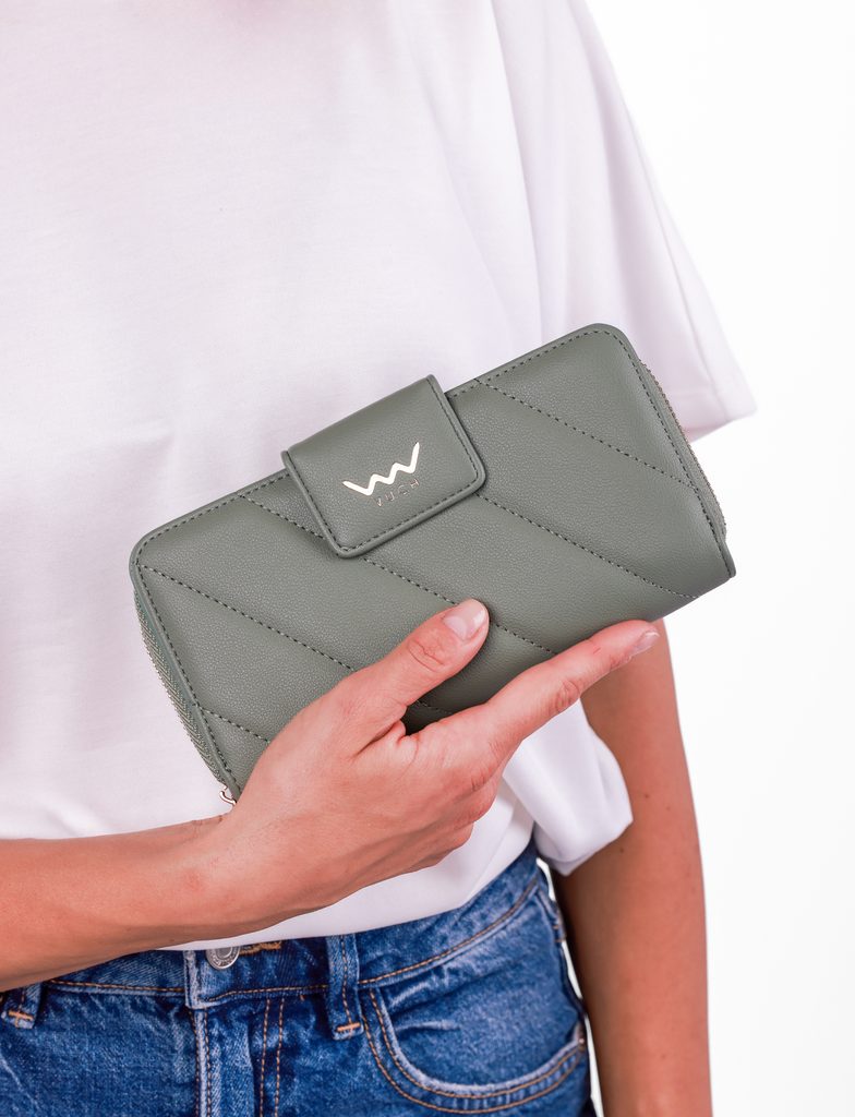 Zoreya Dusty Green large quilted wallet