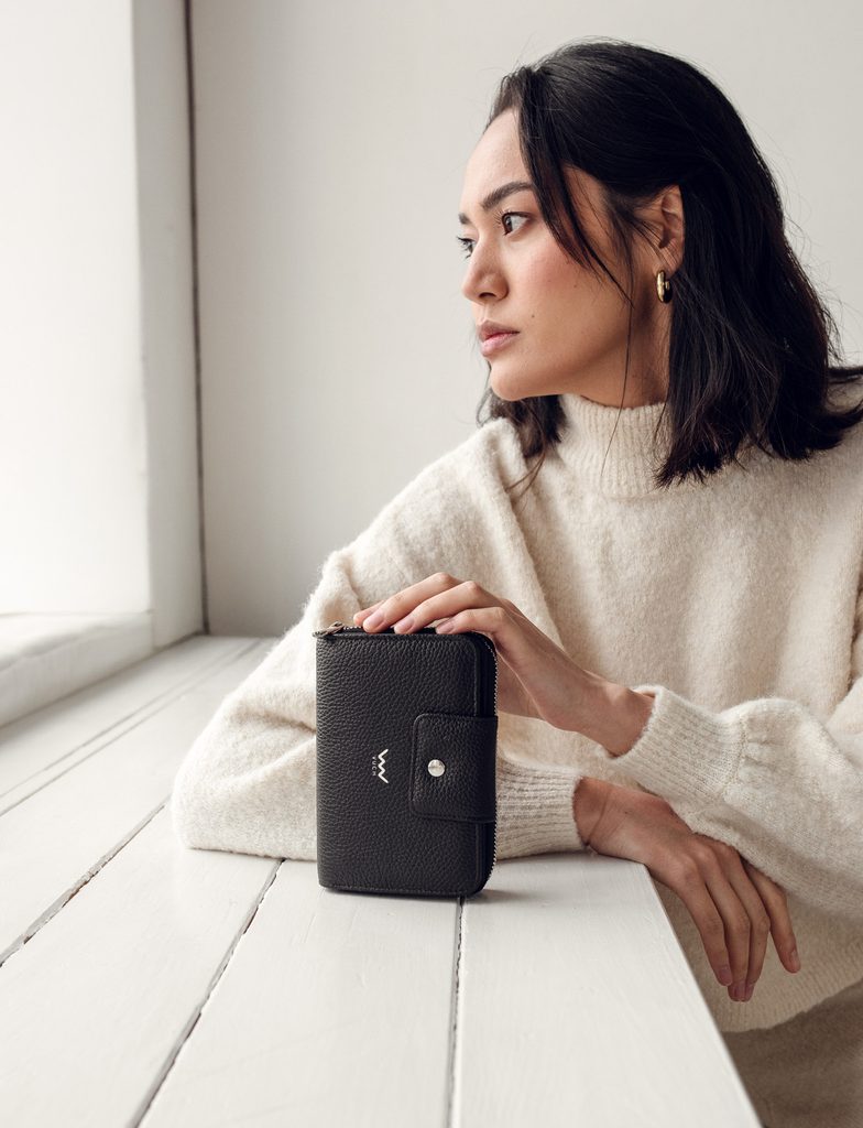Ebba Grace Black medium wallet made from Italian cowhide leather