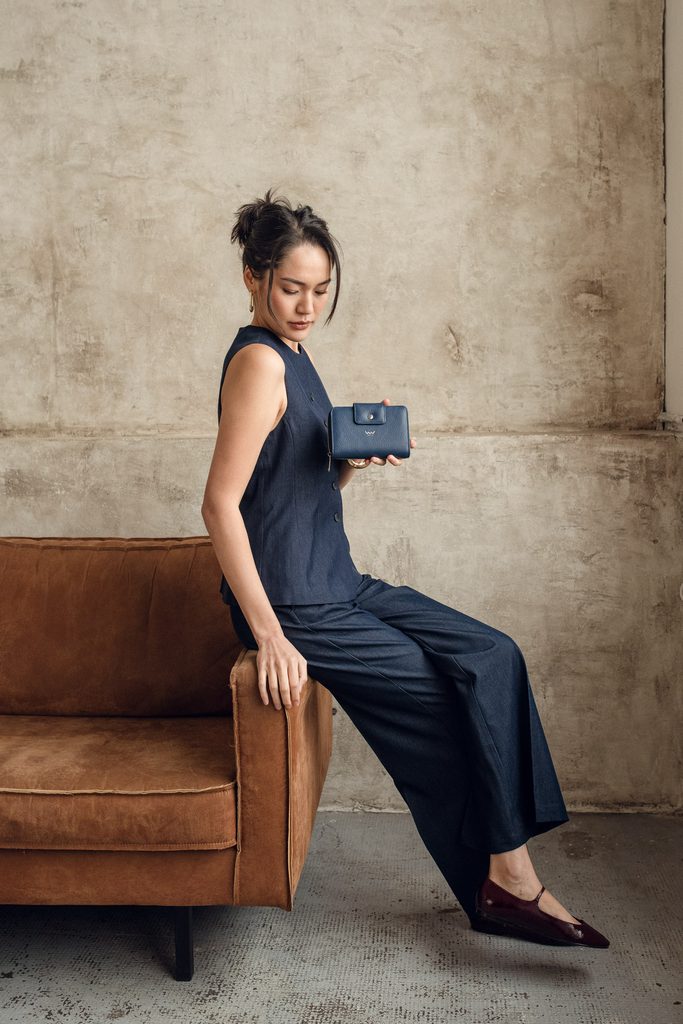 Ebba Grace Dark Blue medium wallet made from Italian bovine leather