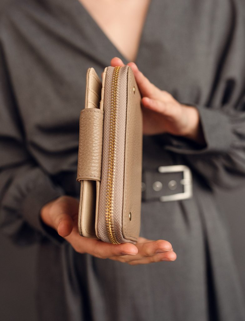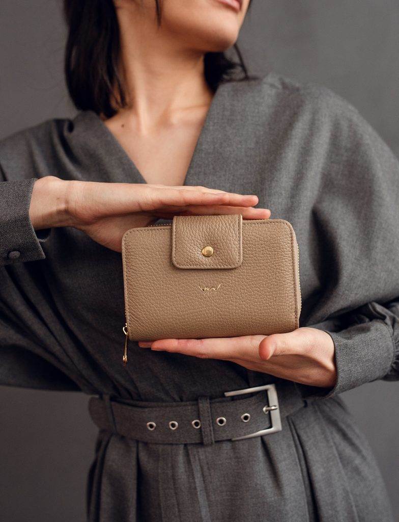 Ebba Grace Taupe medium wallet in Italian bovine leather