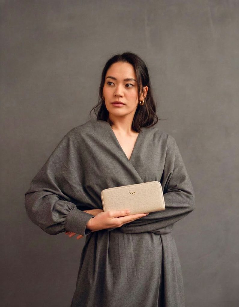 Nightie Nicci Grace Beige zip wallet in Italian bovine leather
