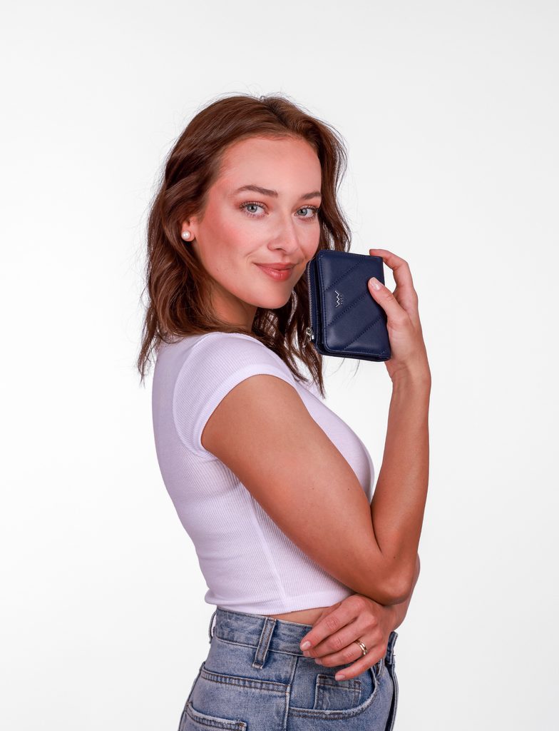 Azra Blue small quilted snap purse