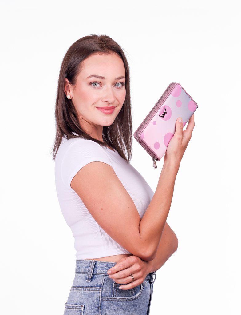 More informationThis wallet doesn't mess about! The new polka dot style gives it a proper dose of boldness and energy. The black and white Vuch logo on the front just emphasises that this isn't a piece that would blend into the crowd. The zip keeps everything nice and secure, even when you're rushing through life. Because style can be wild, even when you've got everything nicely organised.